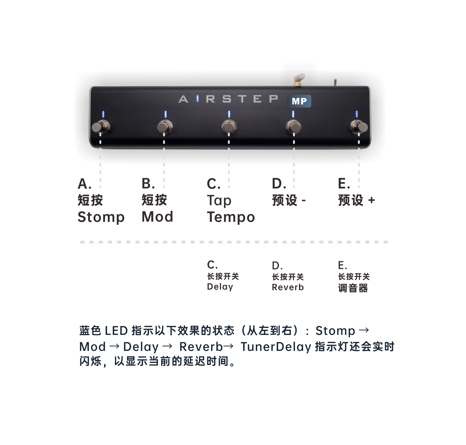 2. 解放双手控制:切换预设、开关效果、设定 Tap Tempo、启用调音器